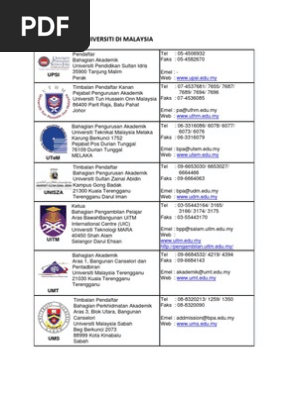 Senarai Nama Universiti Di Malaysia Pdf