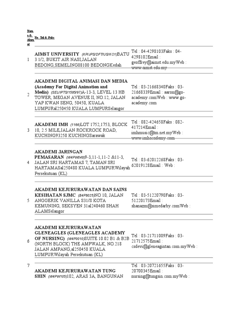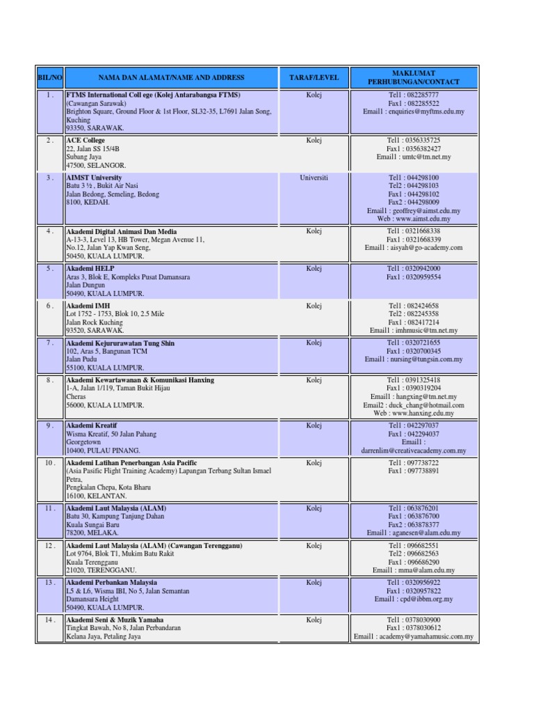 Senarai U Kolej Dll Berdaftar Pdf
